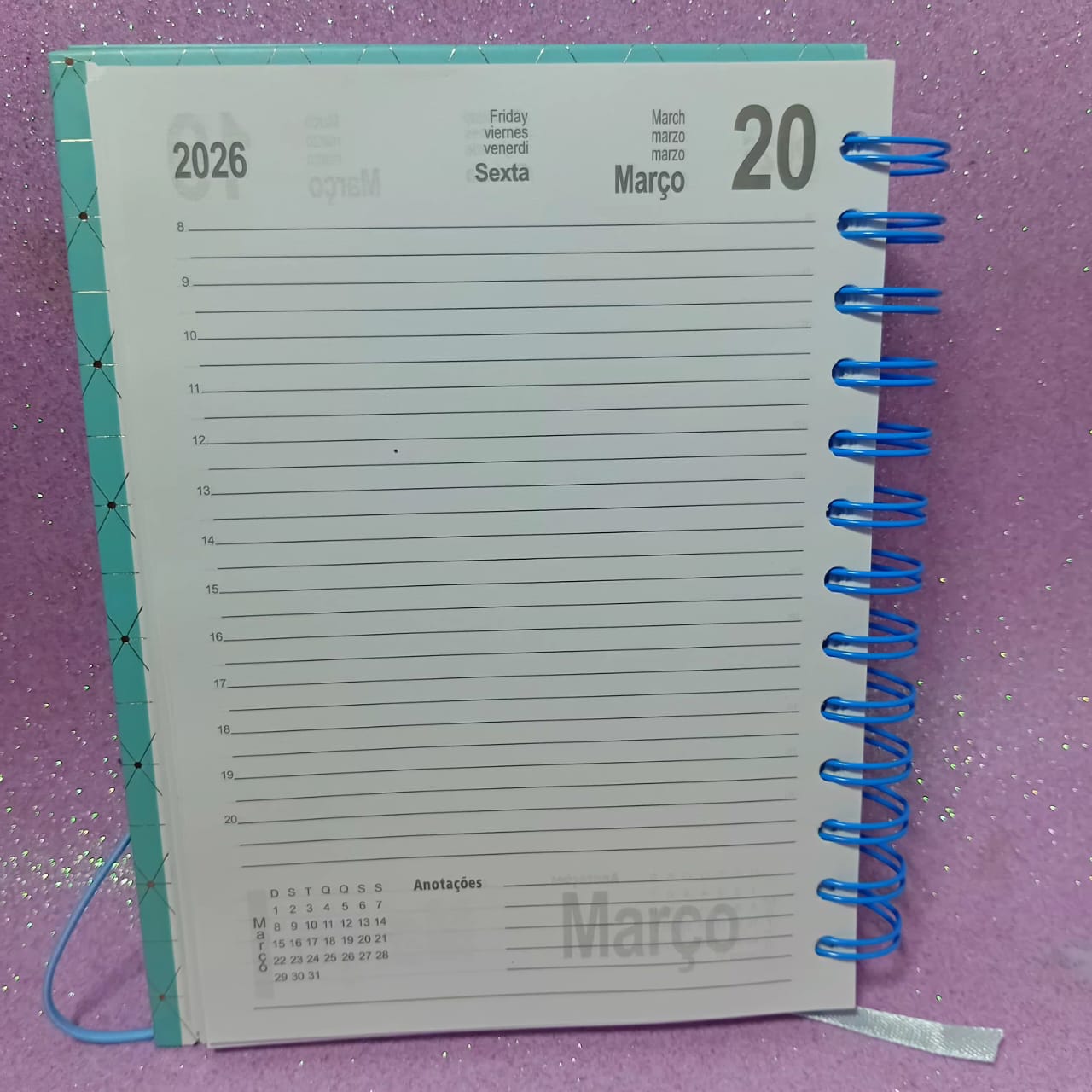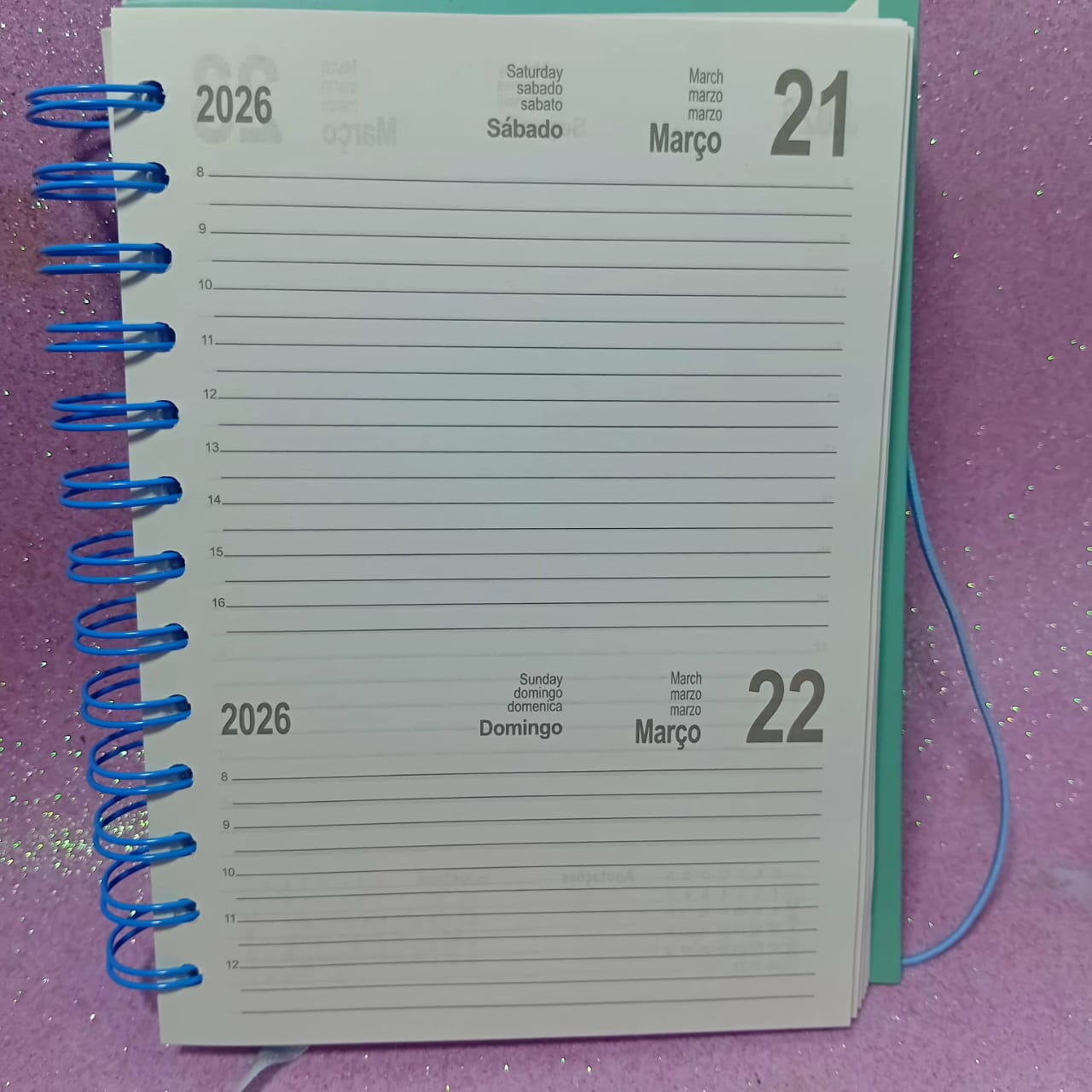 A Agenda 2026 vem com 4 capas coloridas, todas super lindas, e o interior no formato 1 dia por página — perfeito pra quem gosta de espaço pra escrever.