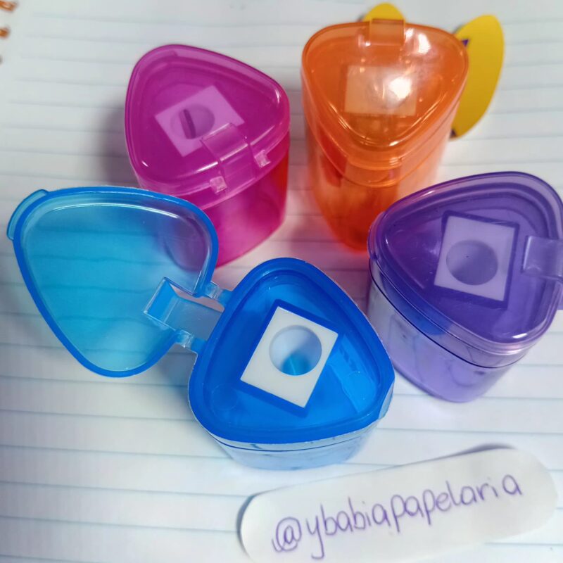 Ele possui reservatório para guardar as aparas do lápis, evitando que caiam na mesa ou no estojo.