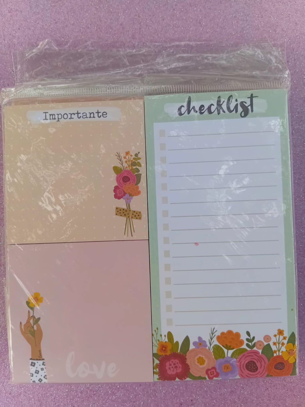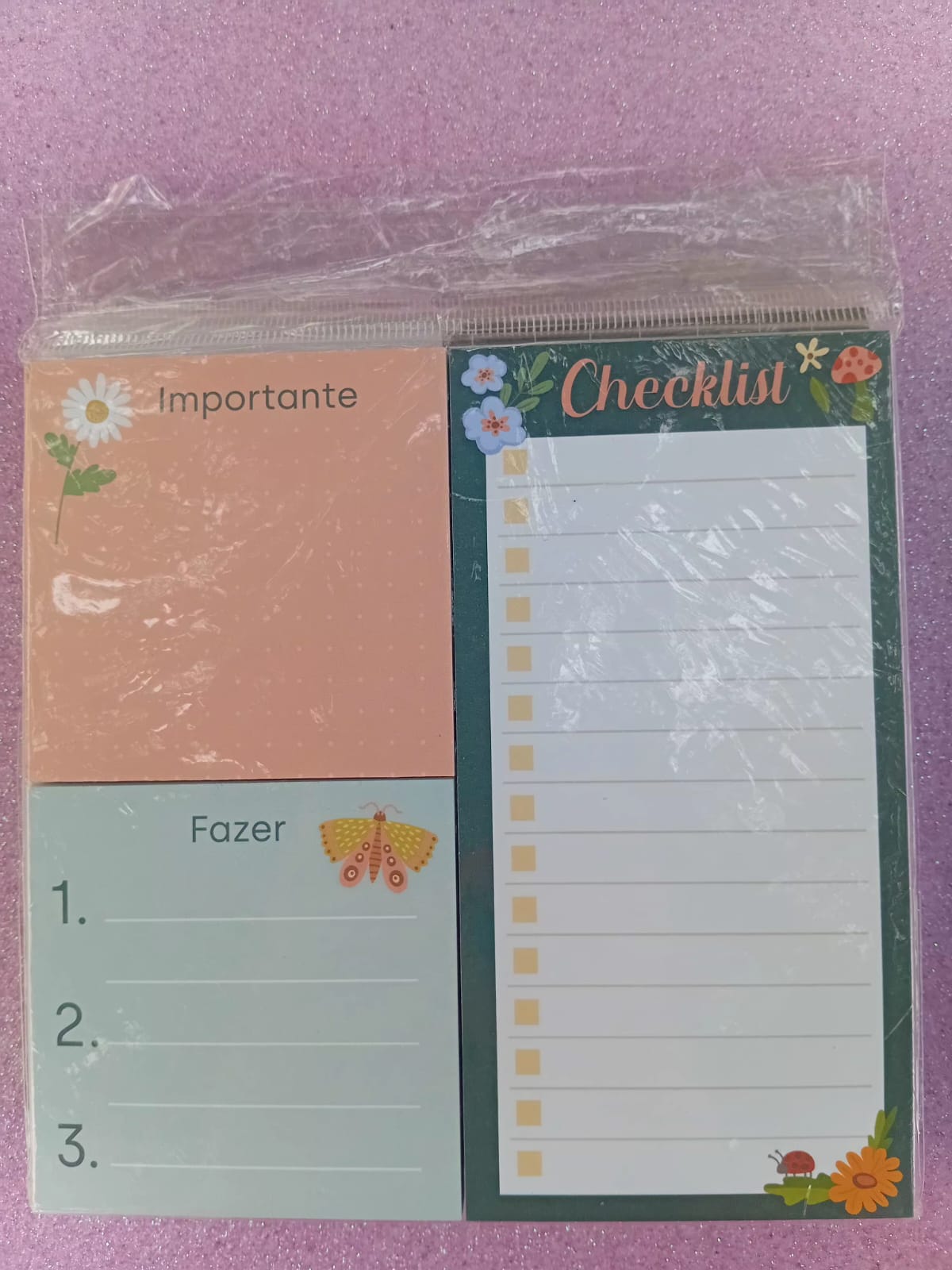 O kit trio de bloquinhos é perfeito para organizar o dia a dia com praticidade e fofura ✨ Contém 3 bloquinhos, sendo 1 no tamanho 7x14cm com checklist e pauta e 2 no tamanho 7x7cm com folhas decoradas. Cada bloquinho possui 50 folhas, ideal para anotações, lembretes e organização da rotina 💖📒