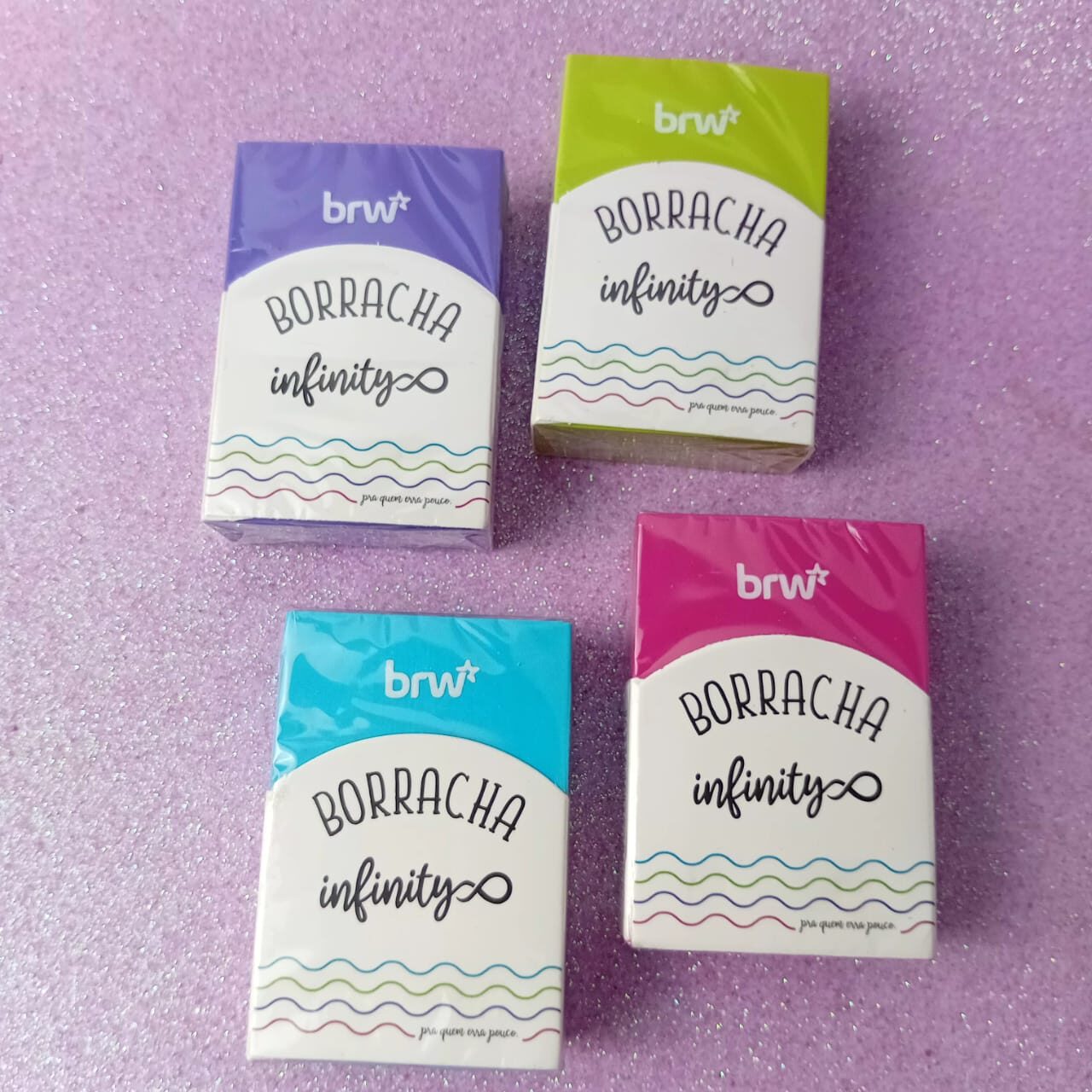 A Borracha Infinity da BRW vem em 4 cores lindas e tem um tamanho 4x maior que as borrachas tradicionais, durando muito mais no dia a dia.