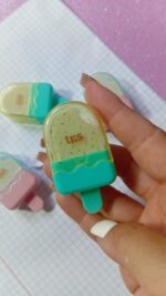 Esse kit vem com 2 borrachas em formato de picolé, coloridas e super fofas, para deixar o estojo ainda mais alegre. As borrachas têm textura macia, apagam bem e são ideais para uso escolar, estudos e desenhos.