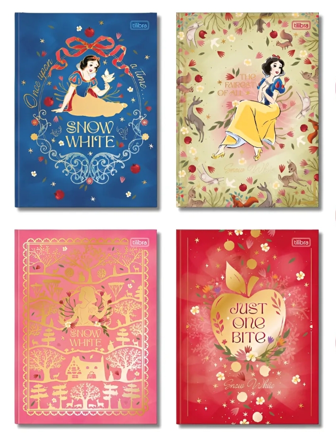 Esse caderno da Branca de Neve vem com 80 folhas totalmente decoradas, deixando qualquer anotação muito mais mágica.