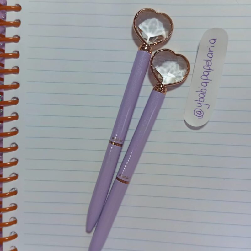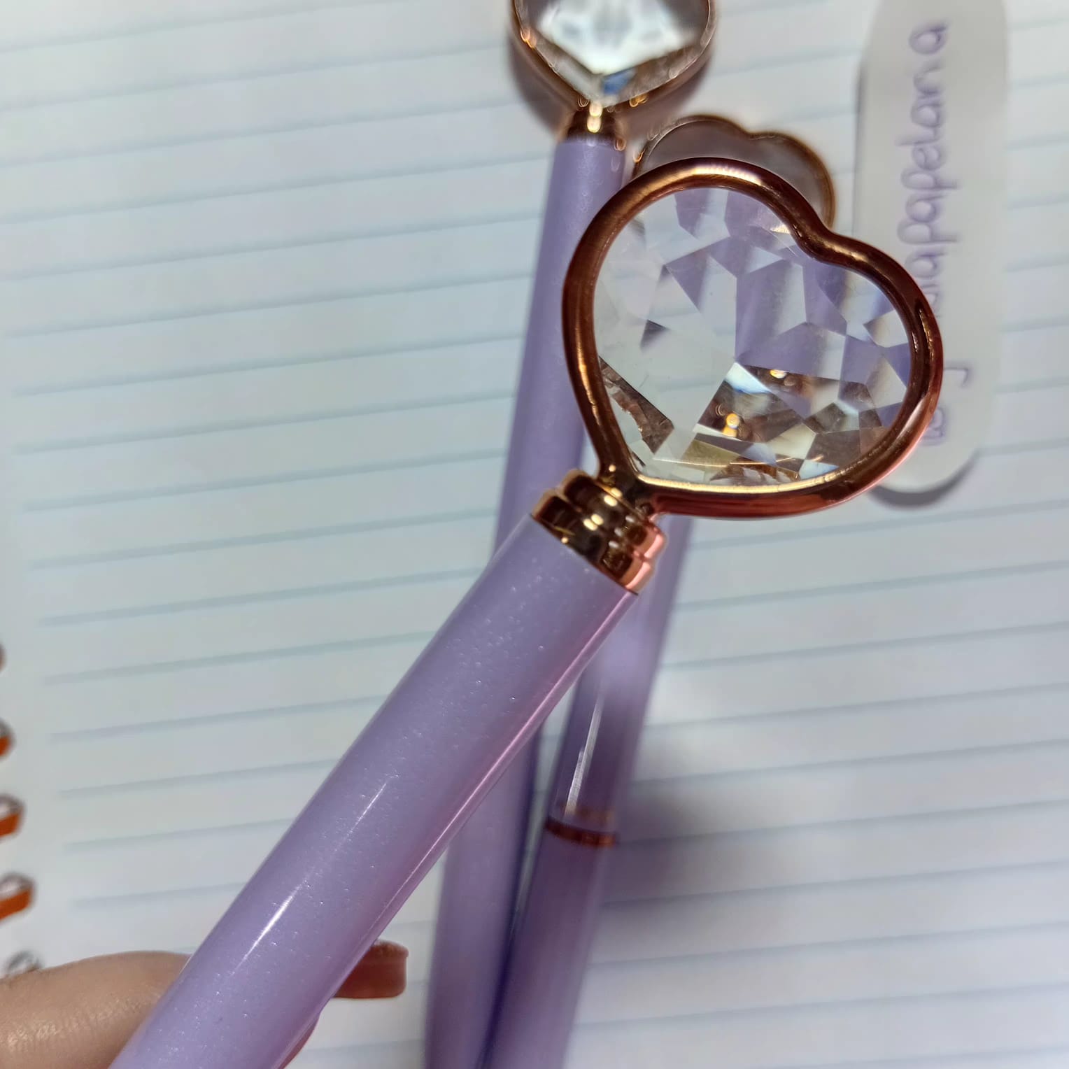 A caneta Coração Diamante lilás é puro charme e sofisticação ✨ Ela possui tinta azul e ponta 1.0mm que sai para fora girando o corpo da caneta, unindo praticidade e estilo em um único clique. O design delicado em formato de coração de diamante com detalhes em rose gold deixa cada escrita elegante e seu estojo superestiloso 😍