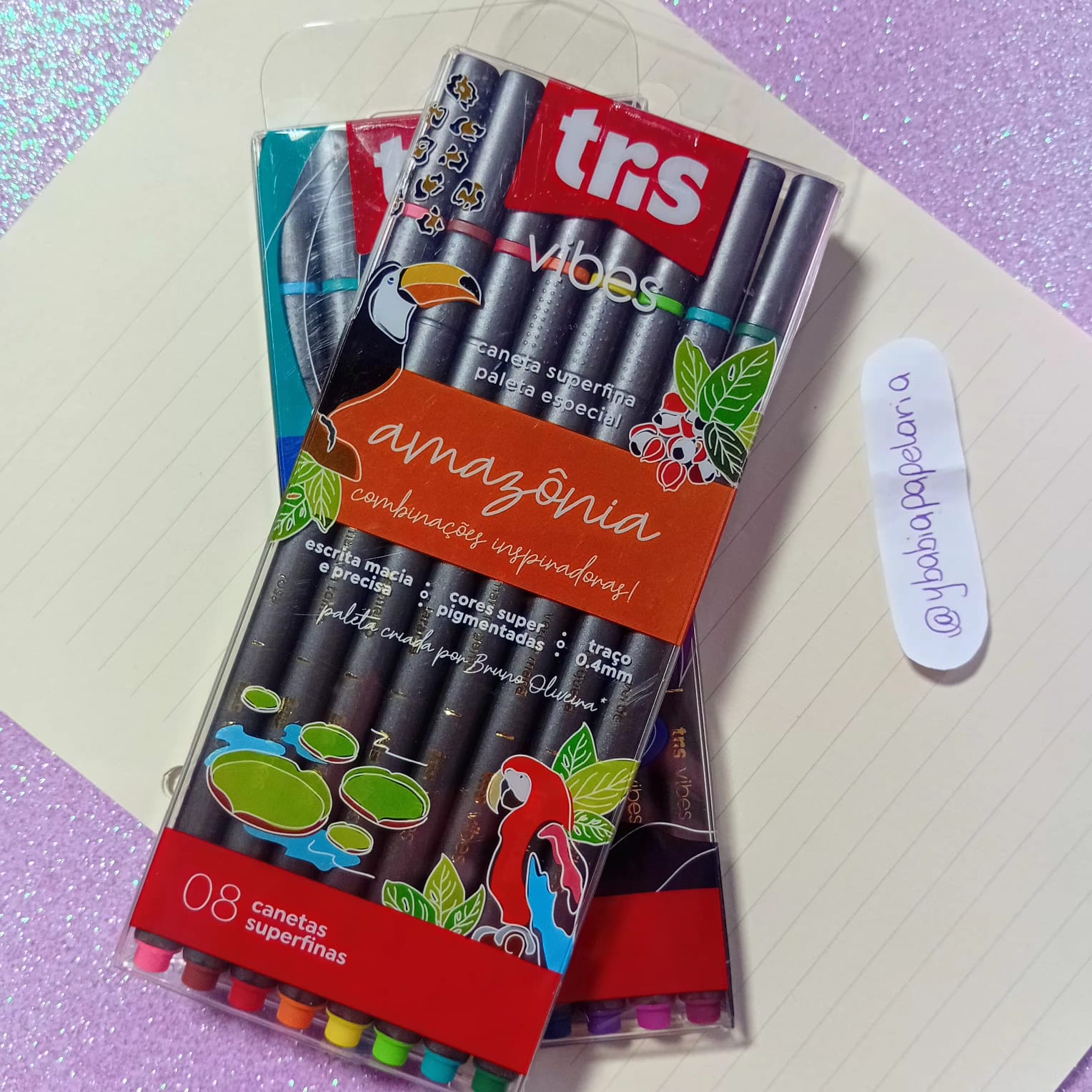 O kit Amazônia Tris vem com 8 canetas de ponta super fina 0.4mm, ideal para quem ama traços delicados, detalhes e escrita precisa 😍