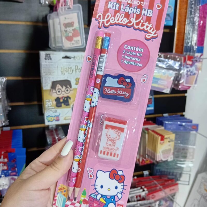 O Kit Lápis Hello Kitty vem com 2 lápis HB, 1 borracha e 1 apontador, todos com design exclusivo da personagem mais charmosa do mundo.