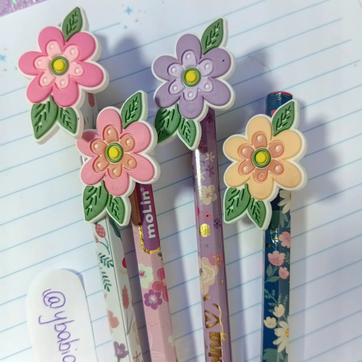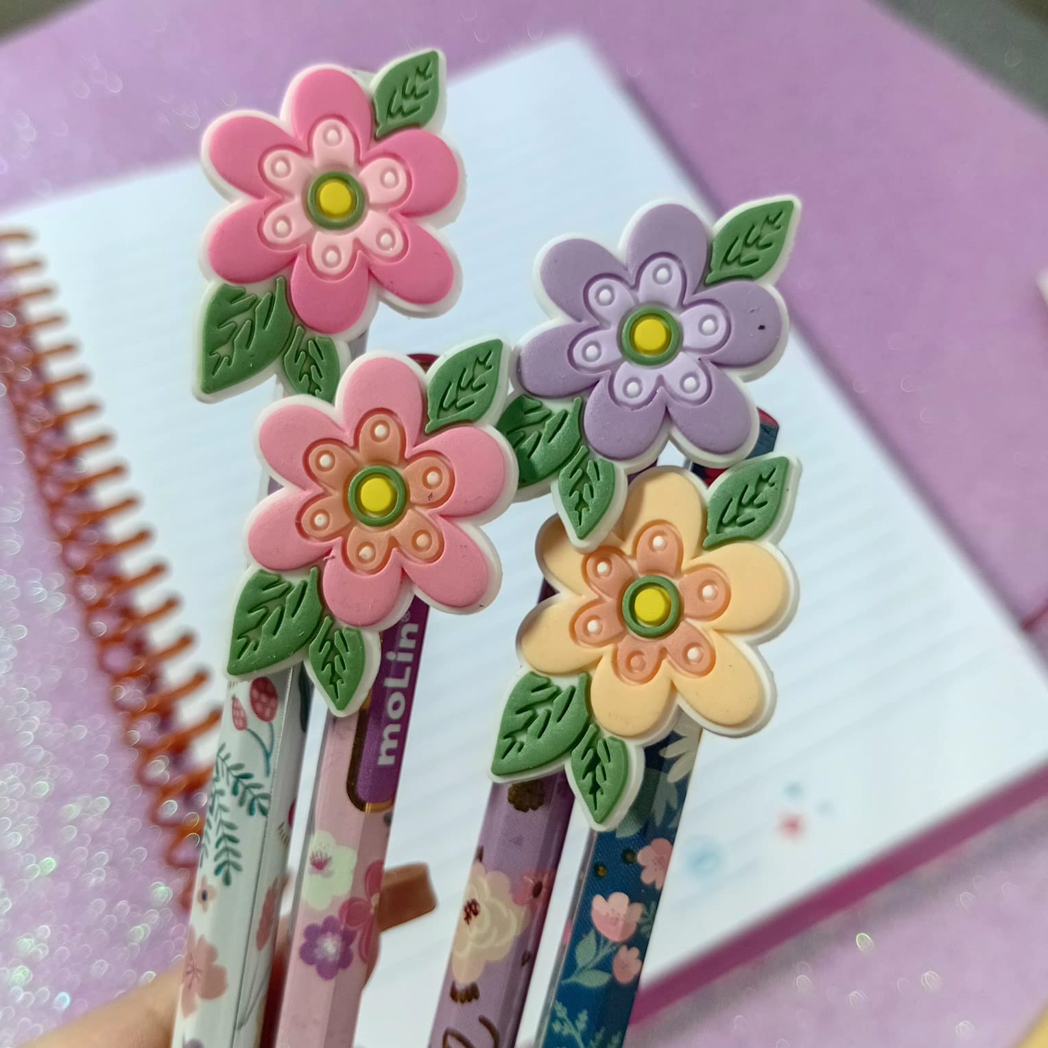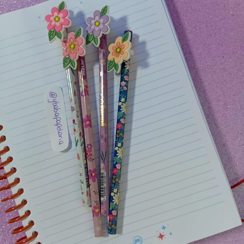 O lápis HB Top Flowers Molin é perfeito para quem ama detalhes delicados. Ele possui corpo decorado no tema floral e vem com uma ponteira emborrachada em formato de flor, que dá um charme todo especial ao lápis — simplesmente apaixonante 🌷