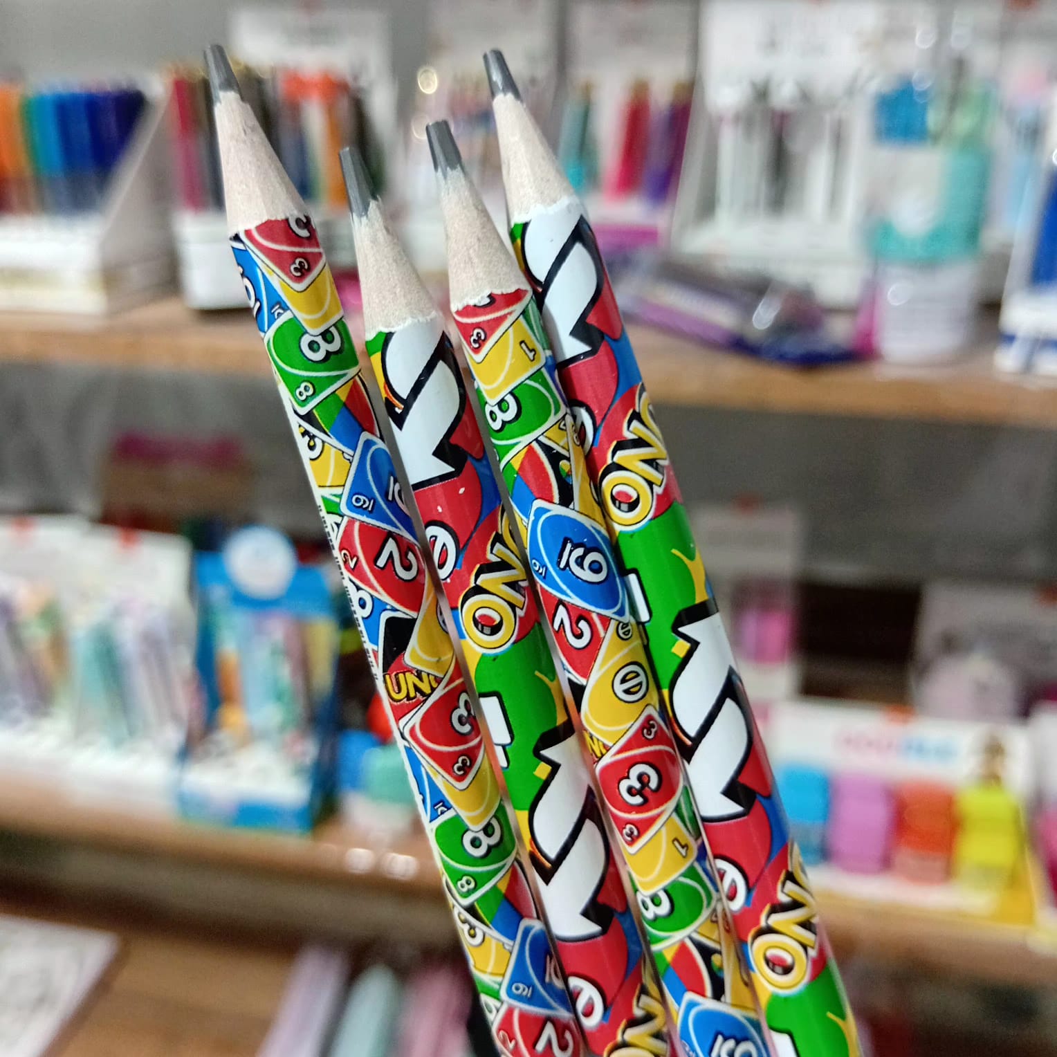 O lápis HB da coleção UNO traz cores e elementos inspirados no clássico joguinho, deixando o estojo super estiloso e descontraído.