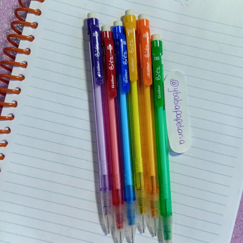 A lapiseira 0,7 Goller Bitz une estilo e praticidade para o dia a dia. Com corpo colorido transparente, ela tem visual moderno e superdescolado, permitindo ver o mecanismo interno e deixando o material escolar ainda mais estiloso 😍