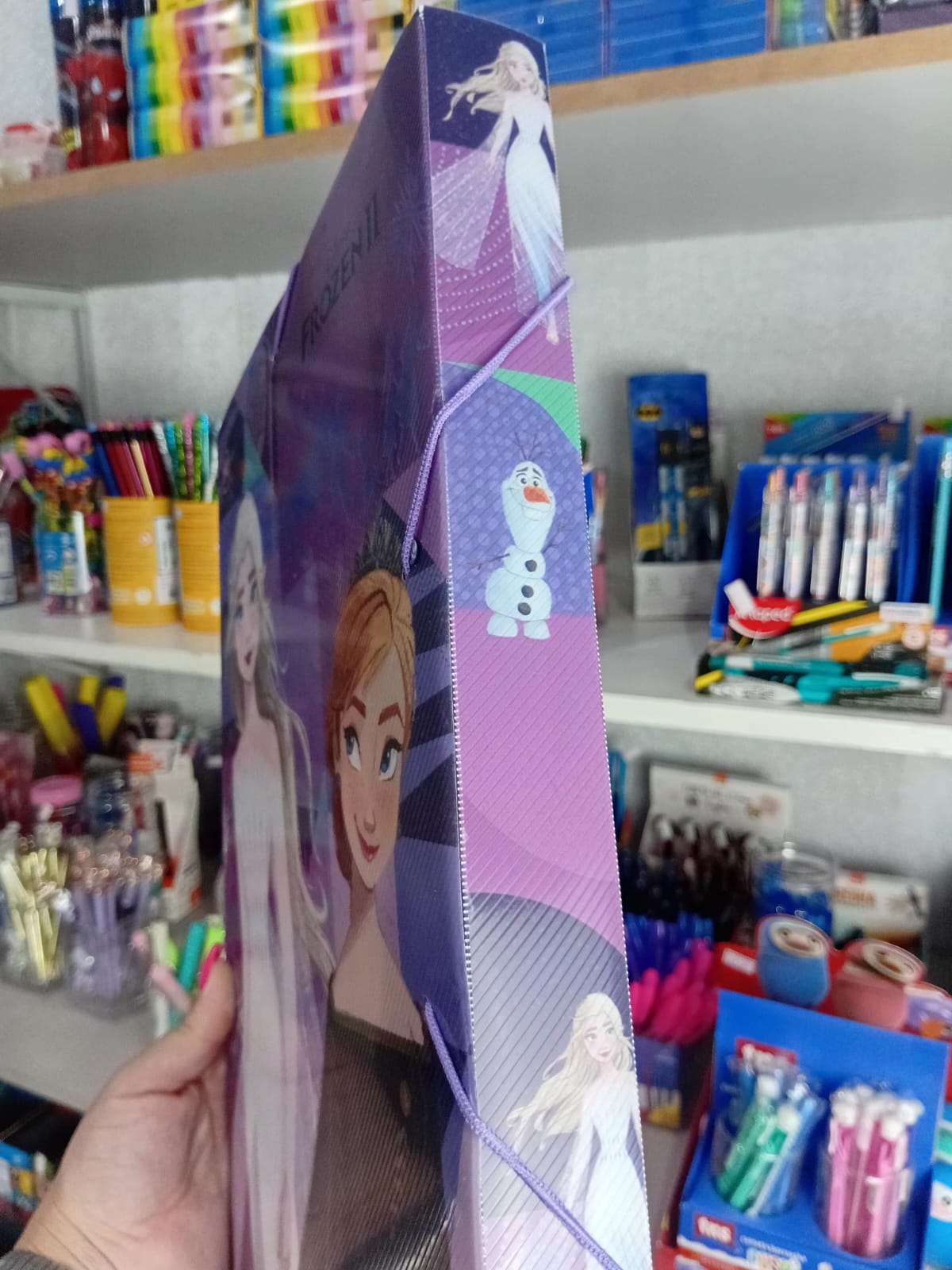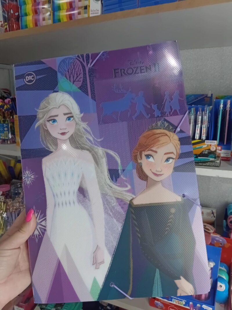 A pasta escolar Frozen é ideal para manter materiais organizados com praticidade e segurança. Possui fechamento com elástico, evitando que papéis e atividades se percam ou amassem.
